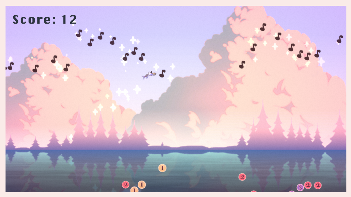 Using one of the audio file waves we got as the backdrop of our game, we imagined an endless shoreline, whose trees are forming the soundfile spikes.